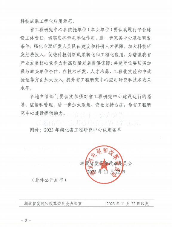11月23日,湖北省发改委下发《关于公布2023年湖北省工程研究中心认定名单的通知》(鄂发改高技〔2023〕326号),武汉三源与湖北工业大学等单位共建的“低碳建筑材料湖北省工程研究中心”正式获批!