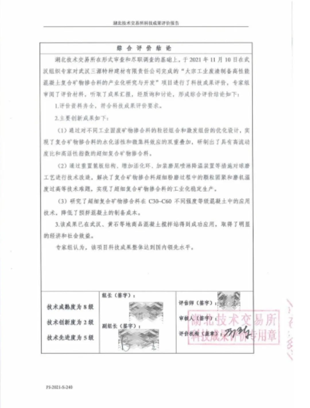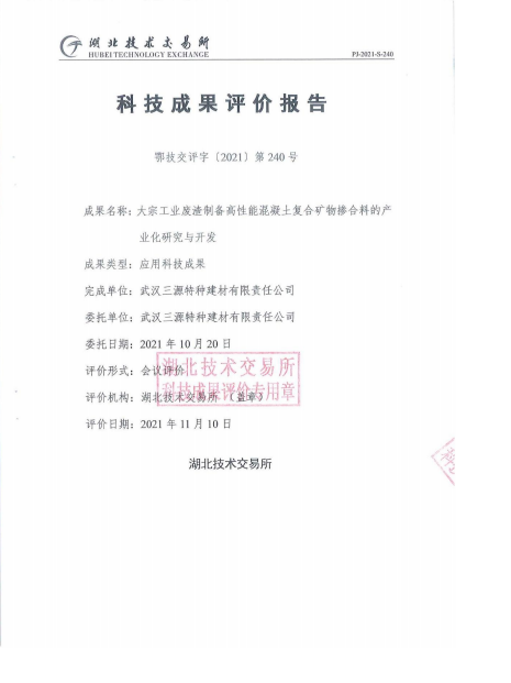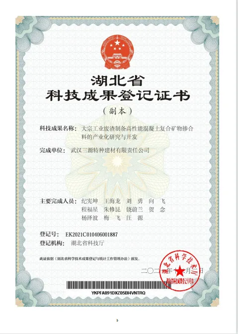 源锦集团的超细复合掺合料已顺利在湖北省科技厅科技立项结题,并获得湖北省科技成果登记证书。