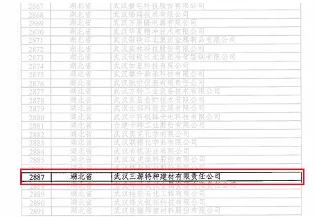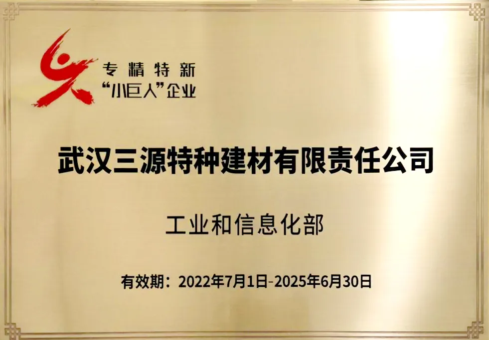 喜讯!经省级中小企业主管部门推荐、专家审核及社会公示,国家工业和信息化部发布第四批专精特新“小巨人”企业获批名单,武汉三源特种建材有限责任公司荣誉入选。